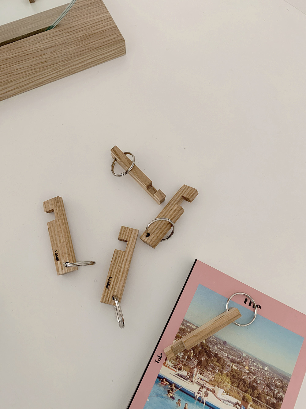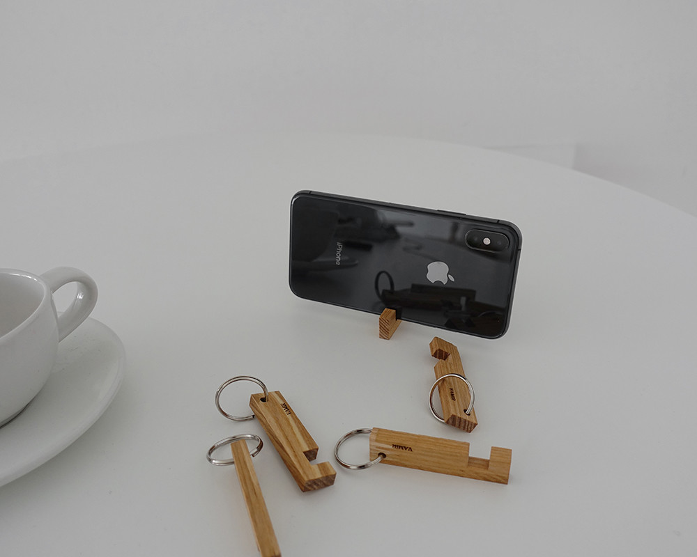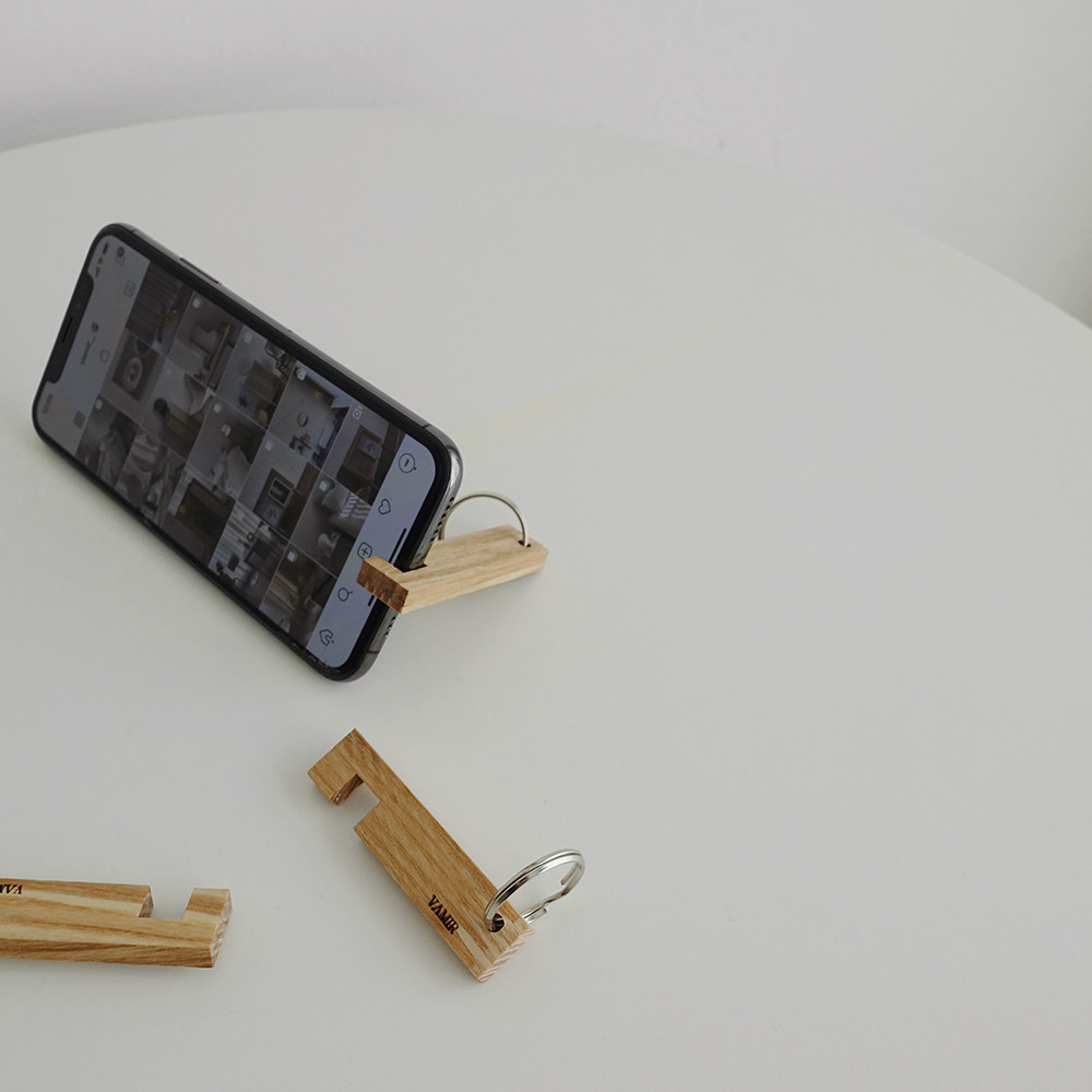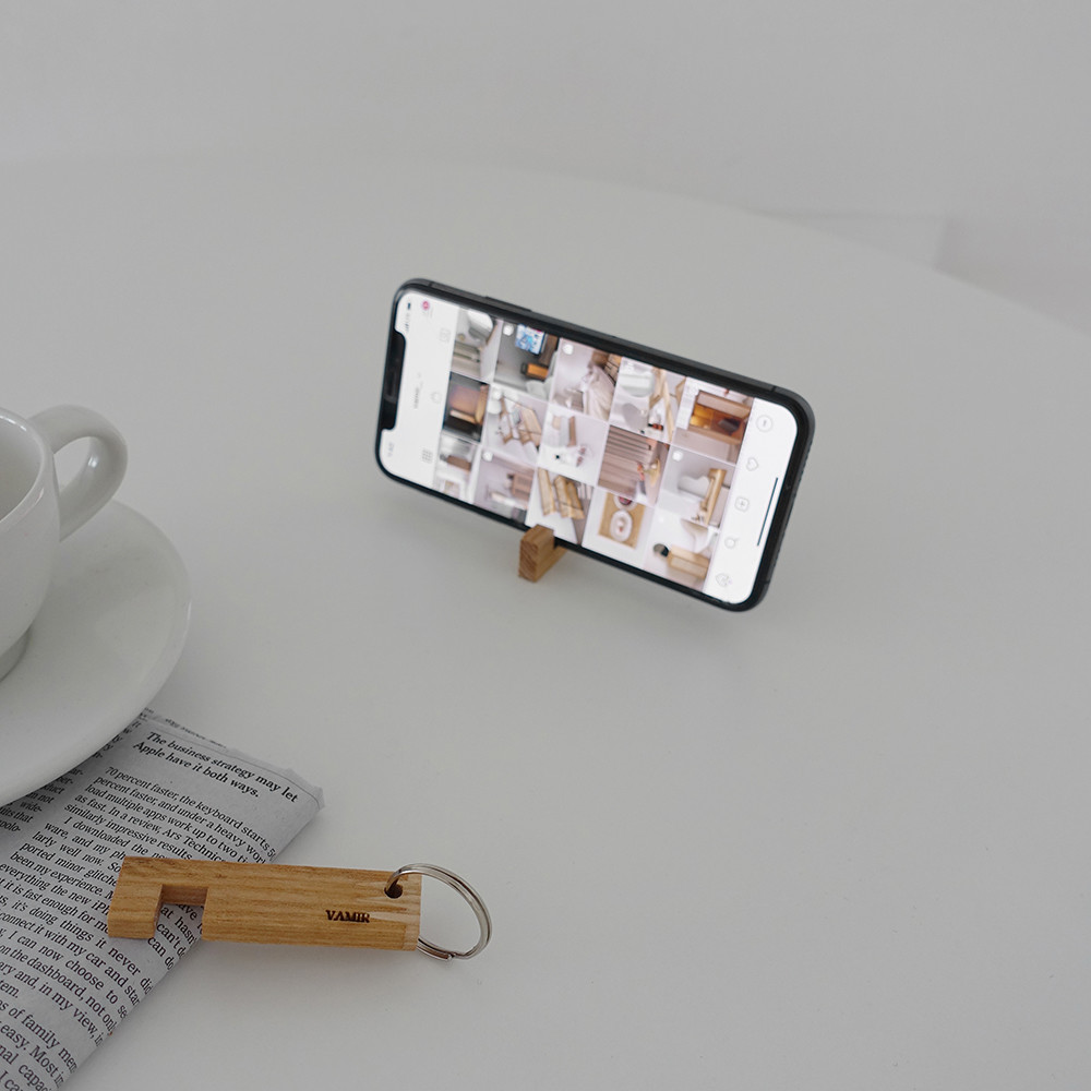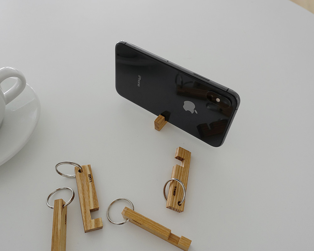 애쉬 원목을 사용한 폰 홀더 키 링은